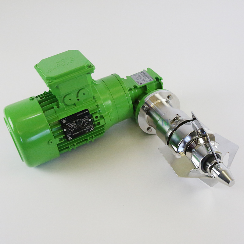 磁力搅拌器接触物料部分全部采用304/316L材料,通过永磁联轴器驱动搅拌轴运转的工作。用焊接隔离套静态死密封取代动态机械密封。
